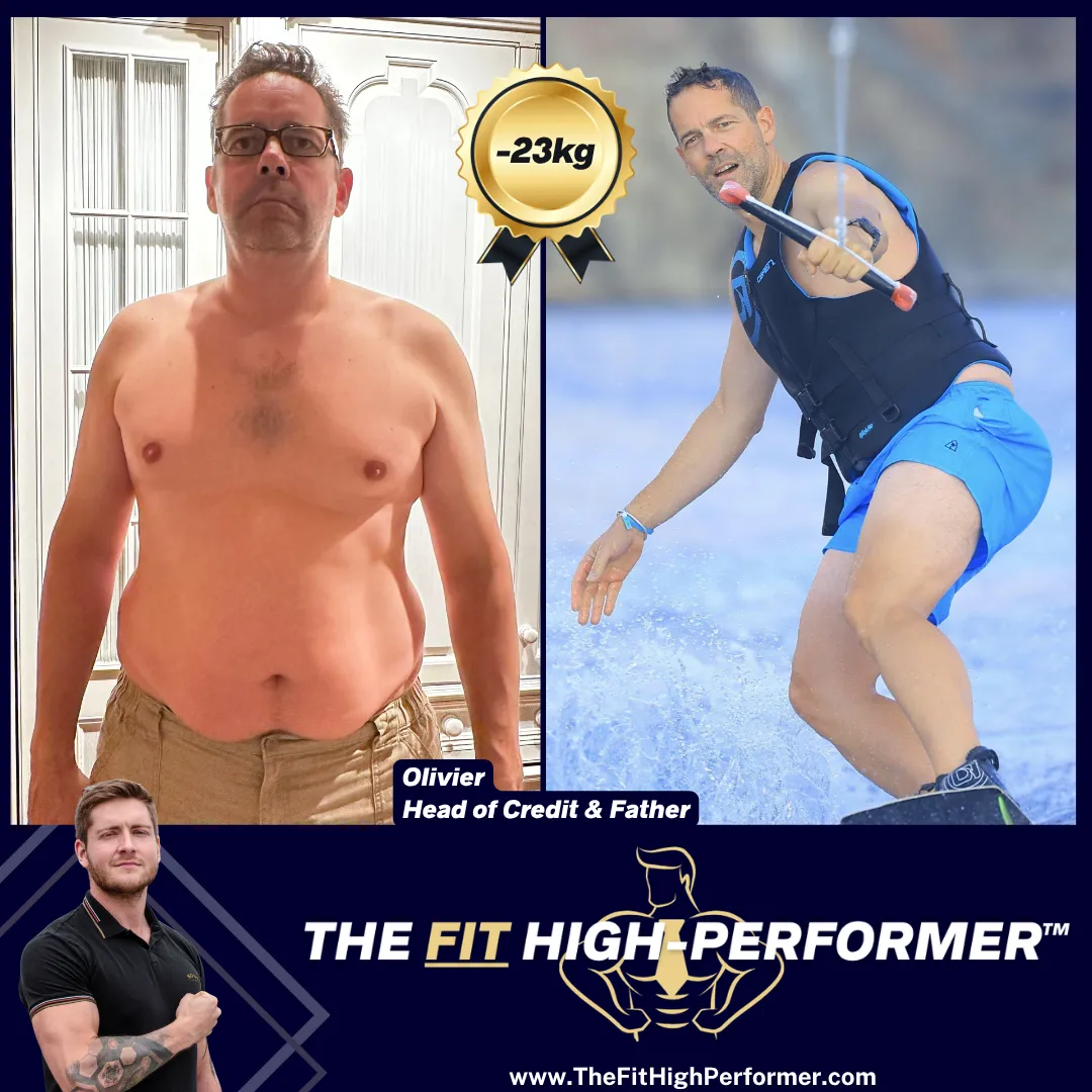 23 kg gone. His tailor called it a "Hugo Boss body." His doctor was impressed by his blood results. He ran a half marathon in 1h52. At work, performance followed: He doubled his teams sales and was promoted to the board. At home too, his young adult kids now struggle to keep up with him.